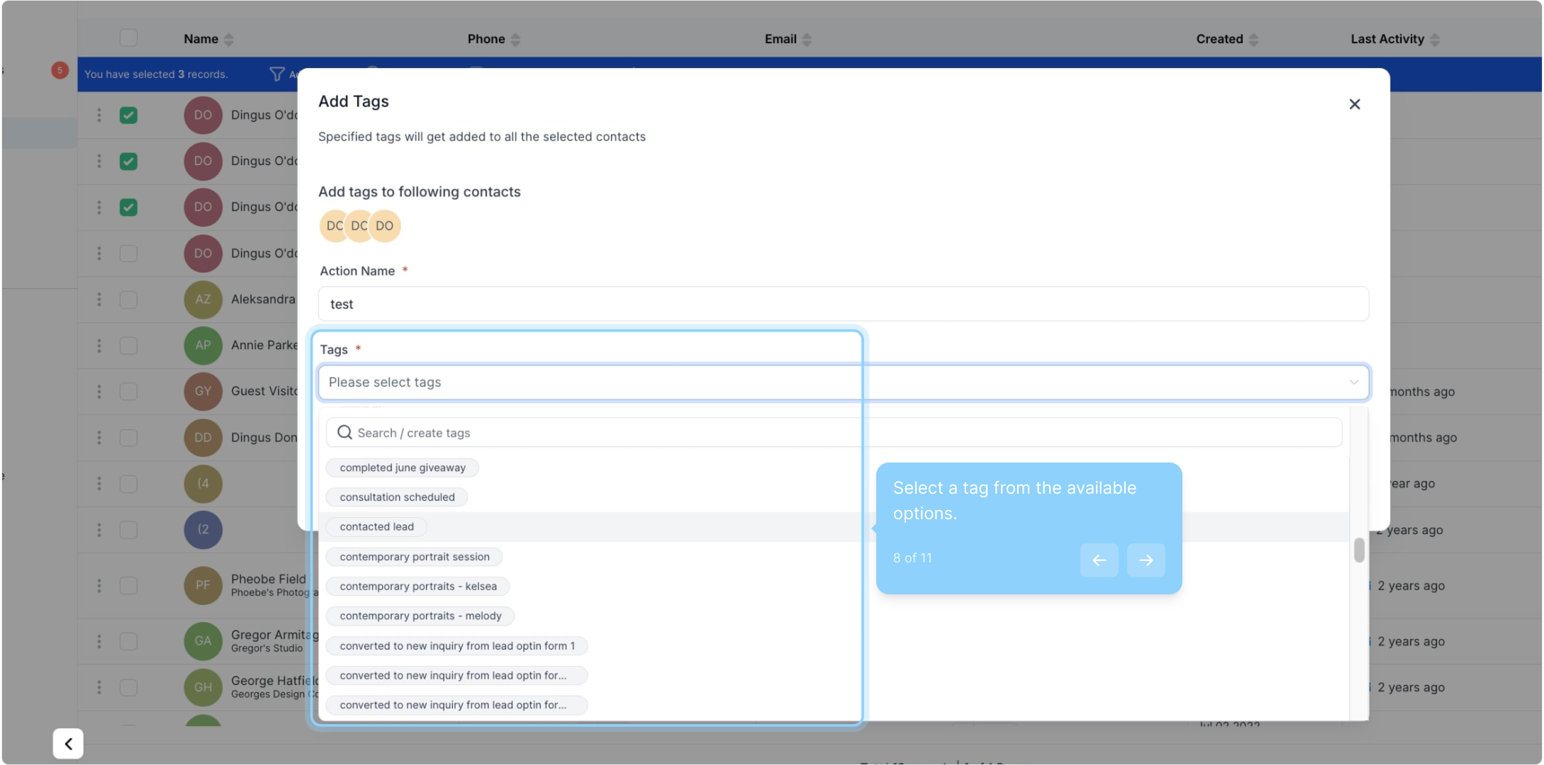 8. Select a tag from the available options.