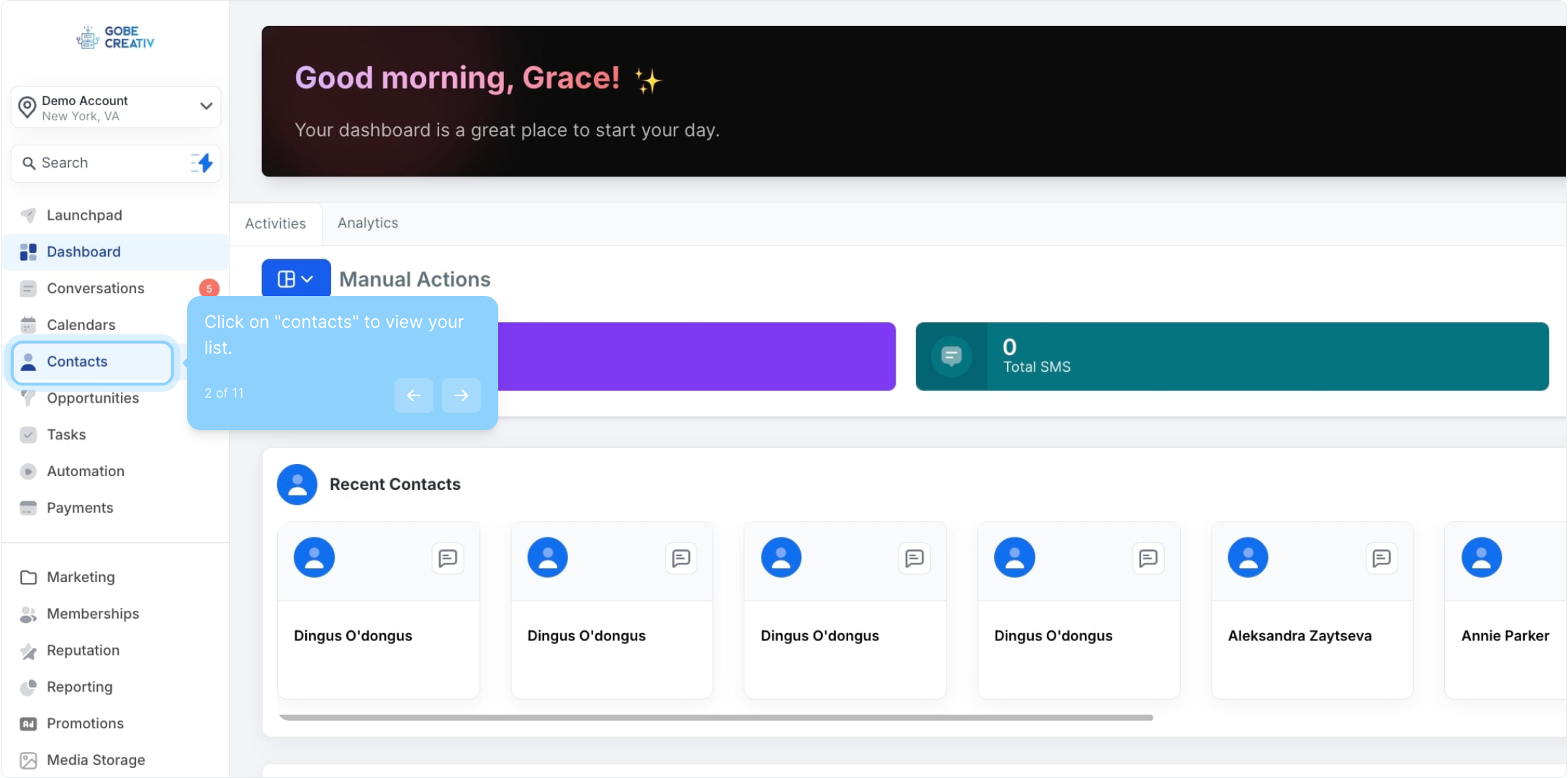 2. Click on "contacts" to view your list.
