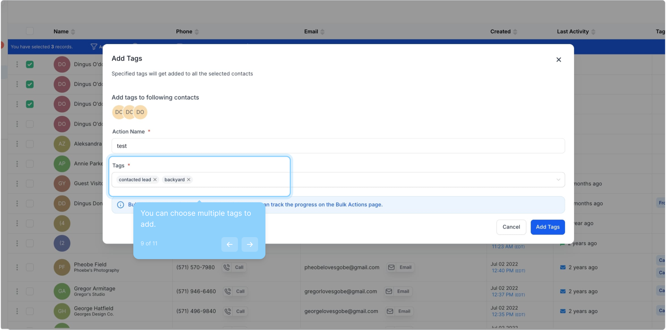 9. You can choose multiple tags to add.