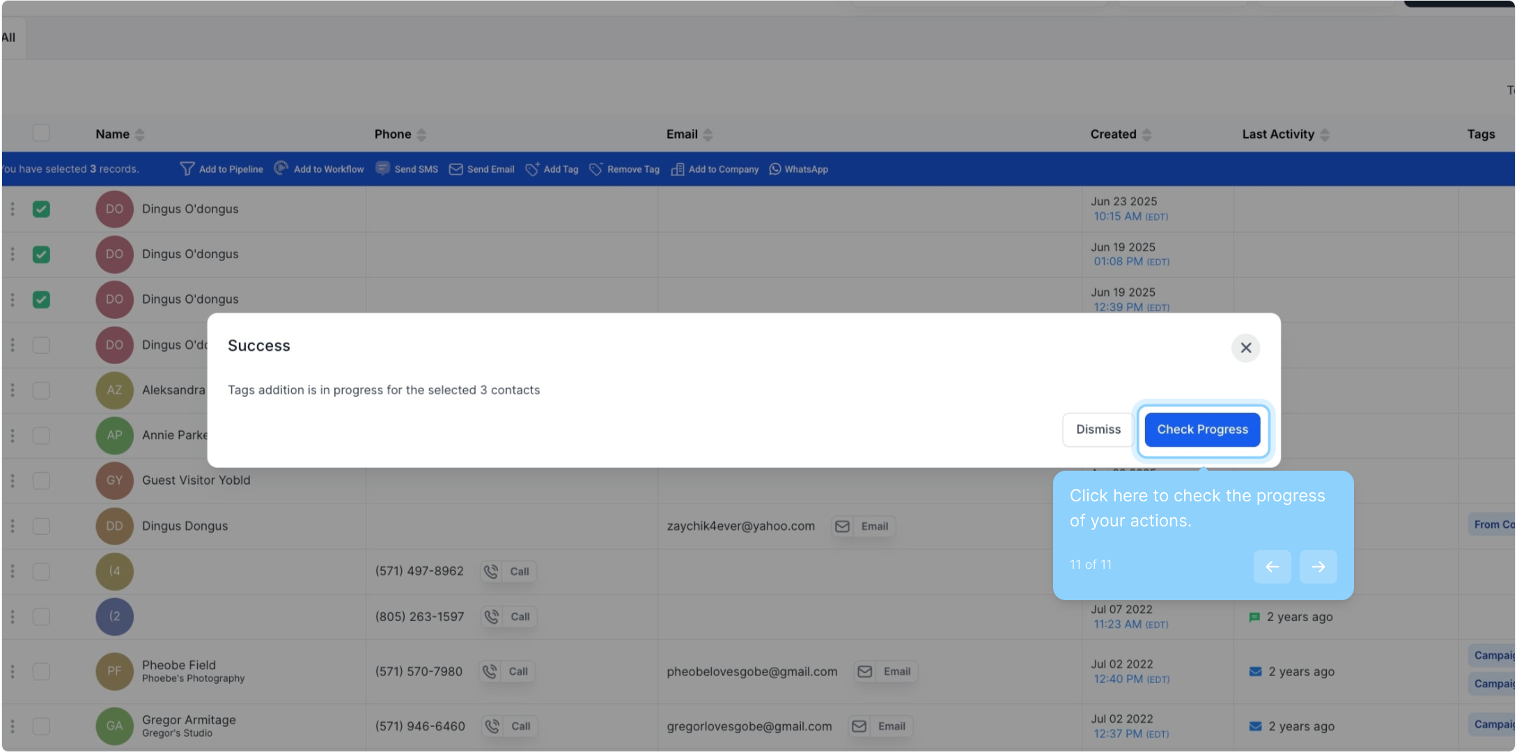 11. Click here to check the progress of your actions.