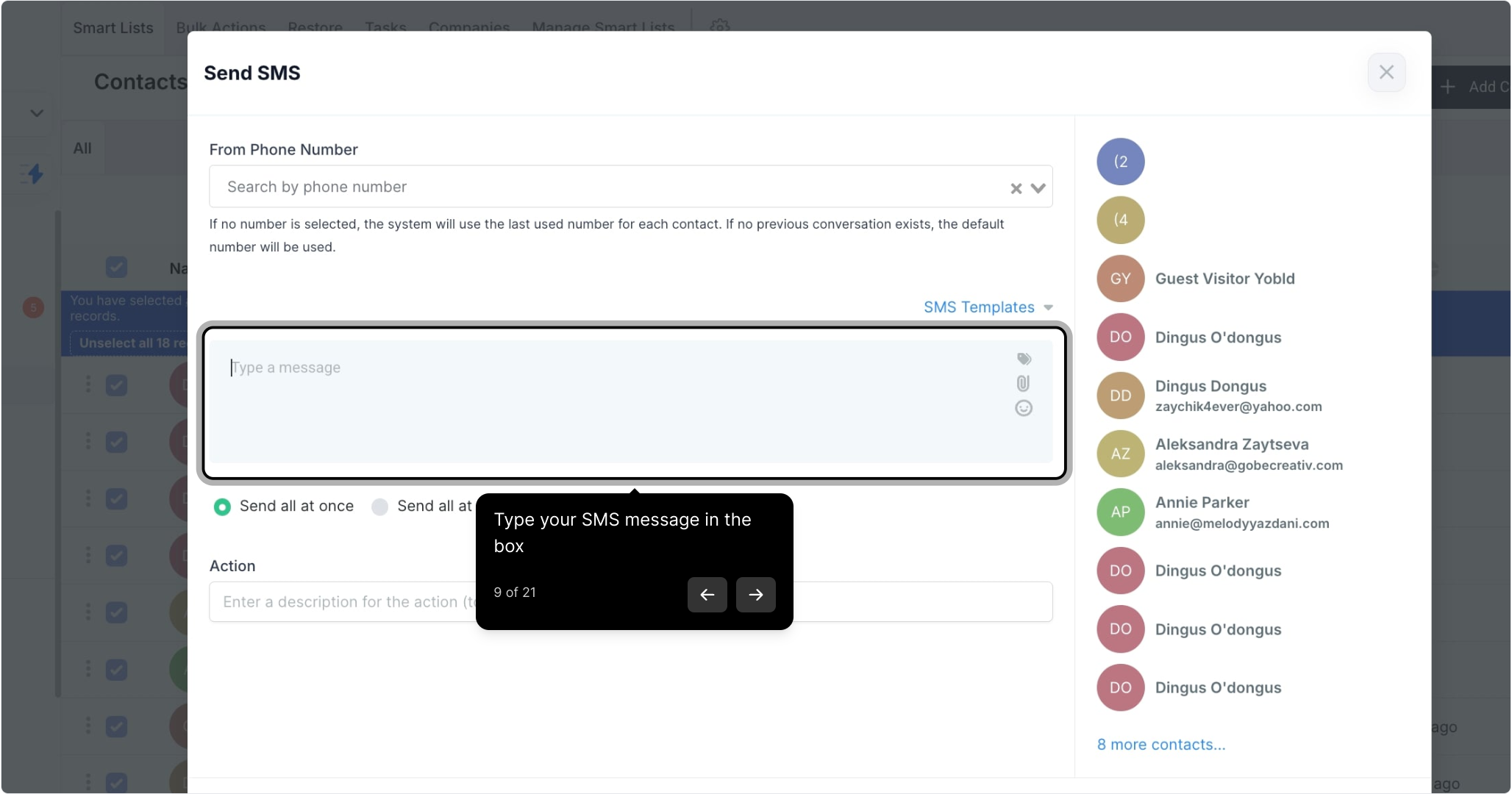 Learn how to send bulk SMS messages to multiple contacts at once using your CRM messaging feature. This guide covers selecting recipients, composing your message, and sending it efficiently.