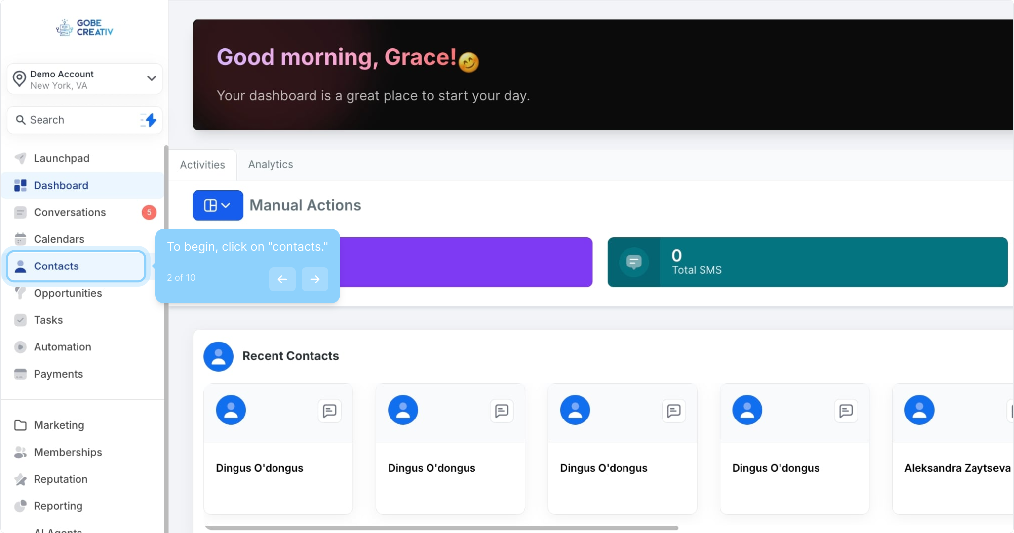 2. To begin, click on "contacts."