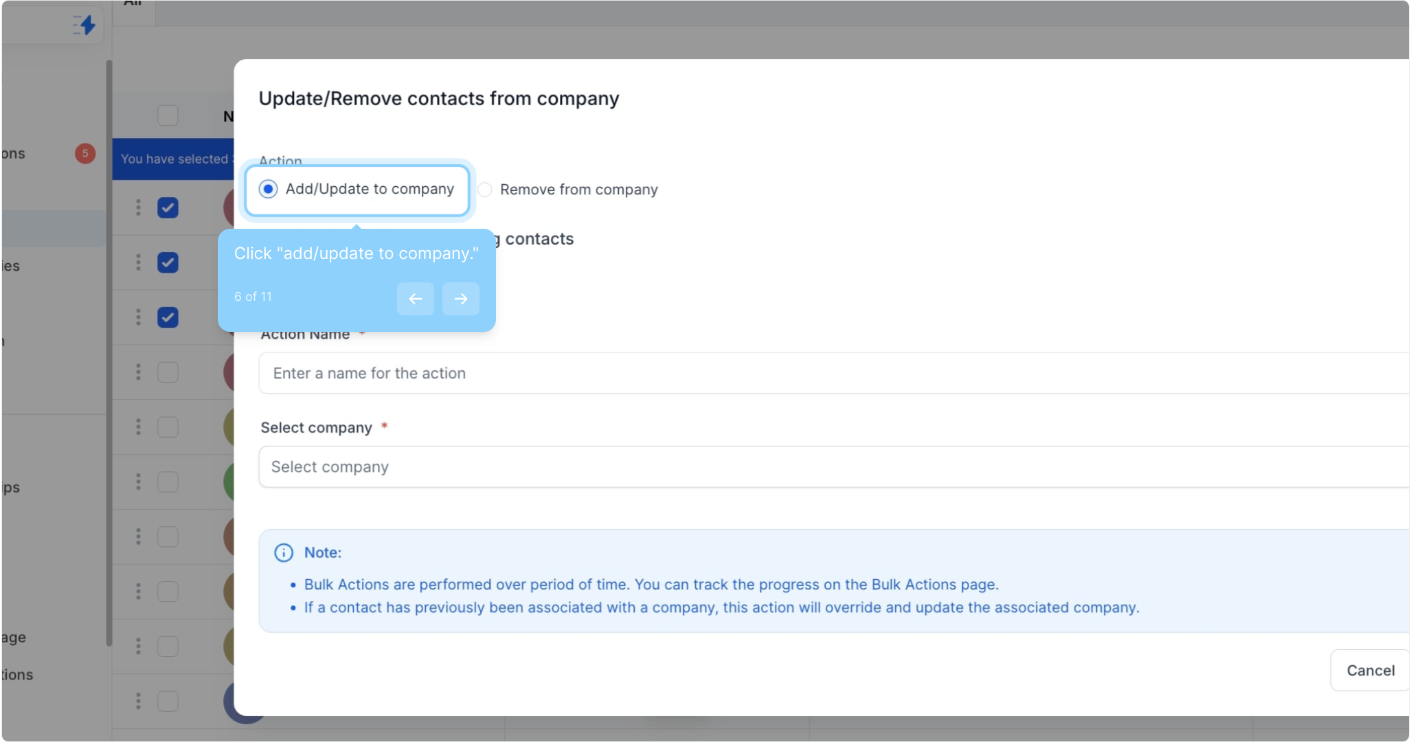 6. Click "add/update to company."