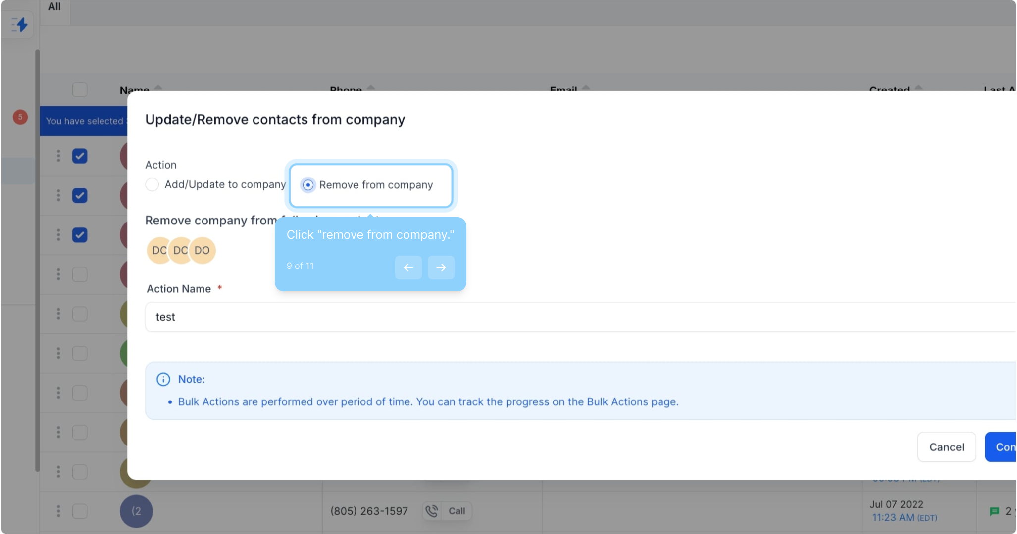 9. Click "remove from company."