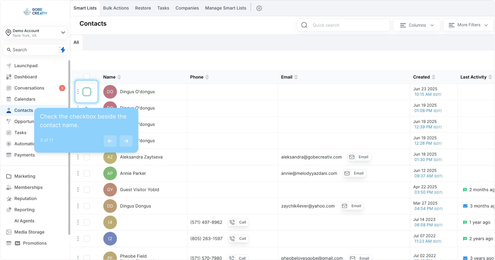 3. Check the checkbox beside the contact name.