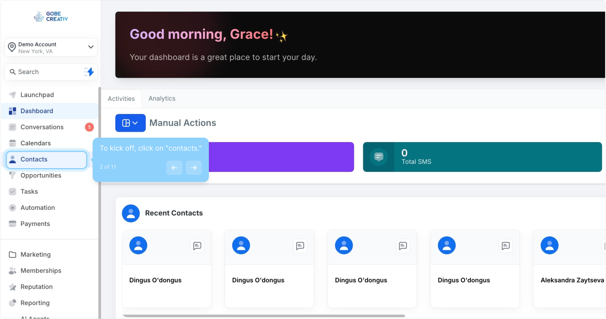 2. To kick off, click on "contacts."