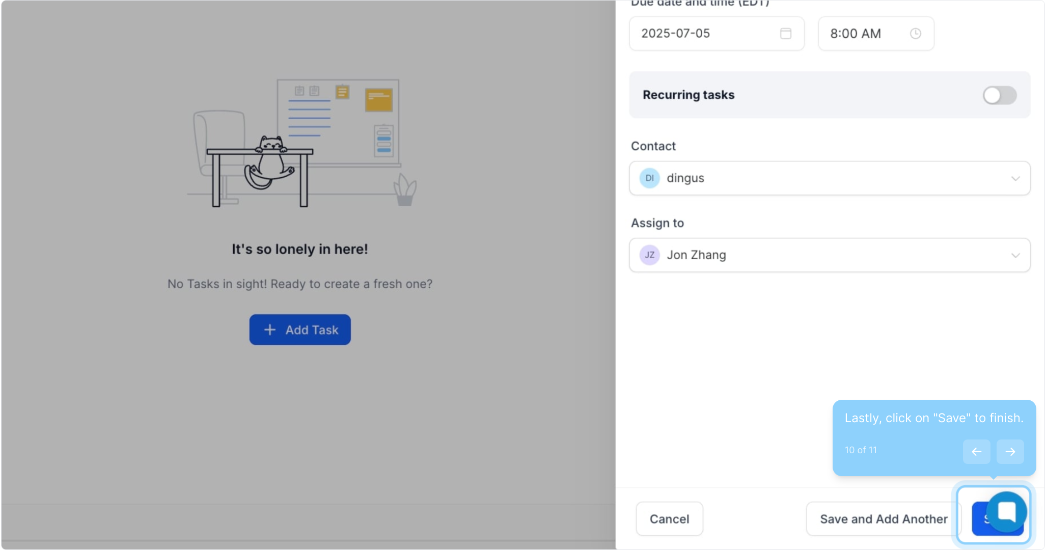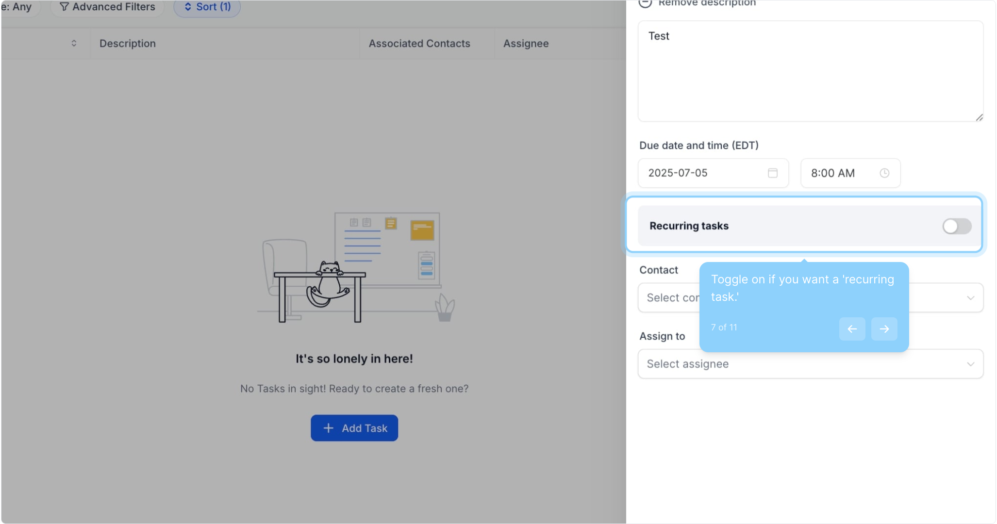 7. Toggle on if you want a 'recurring task.'