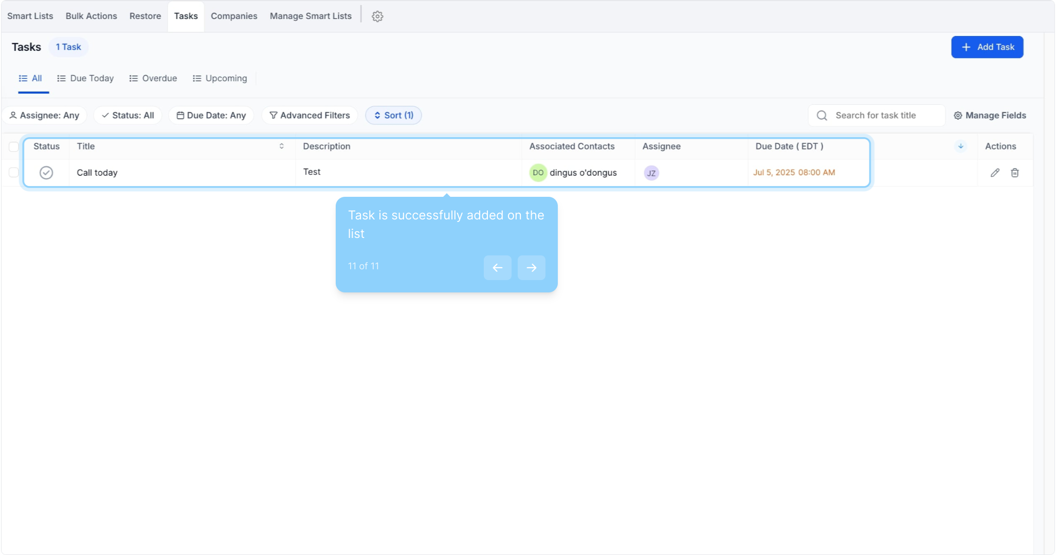 11. Task is successfully added on the list