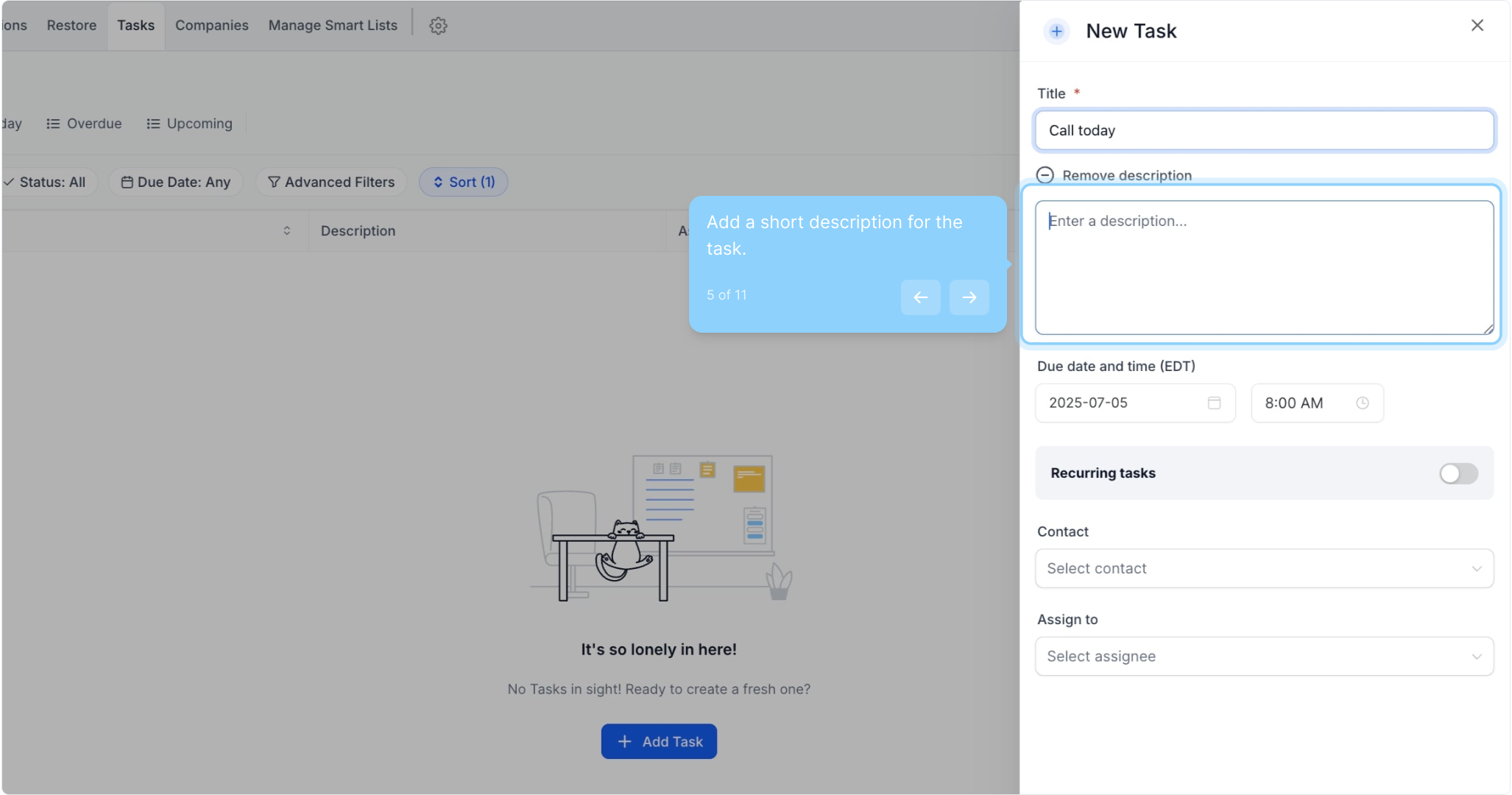 5. Add a short description for the task.