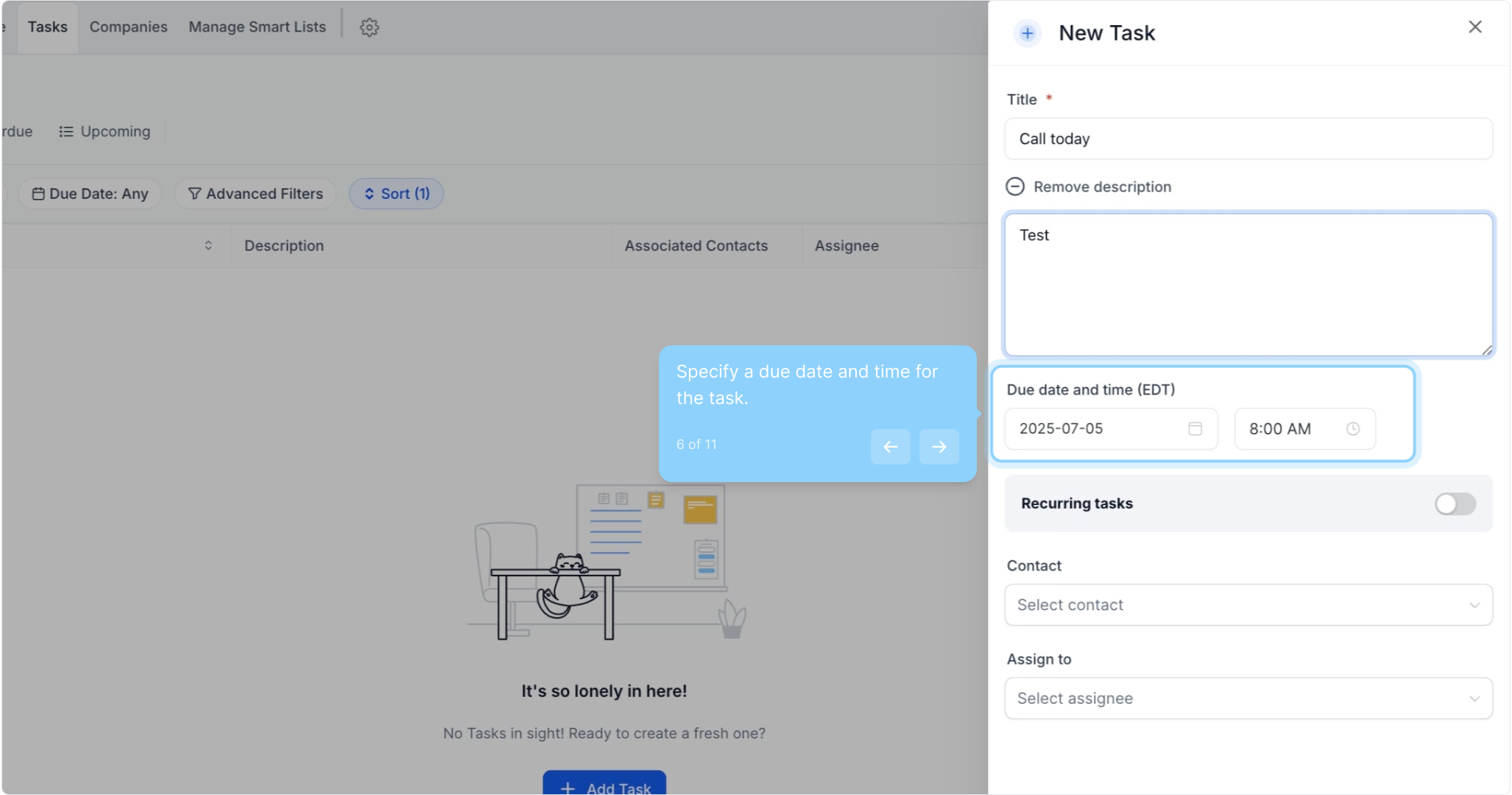 6. Specify a due date and time for the task.