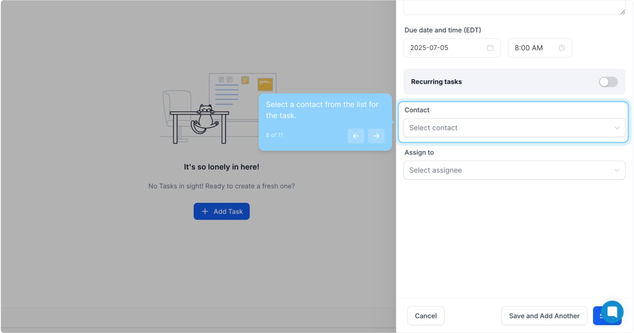 8. Select a contact from the list for the task.