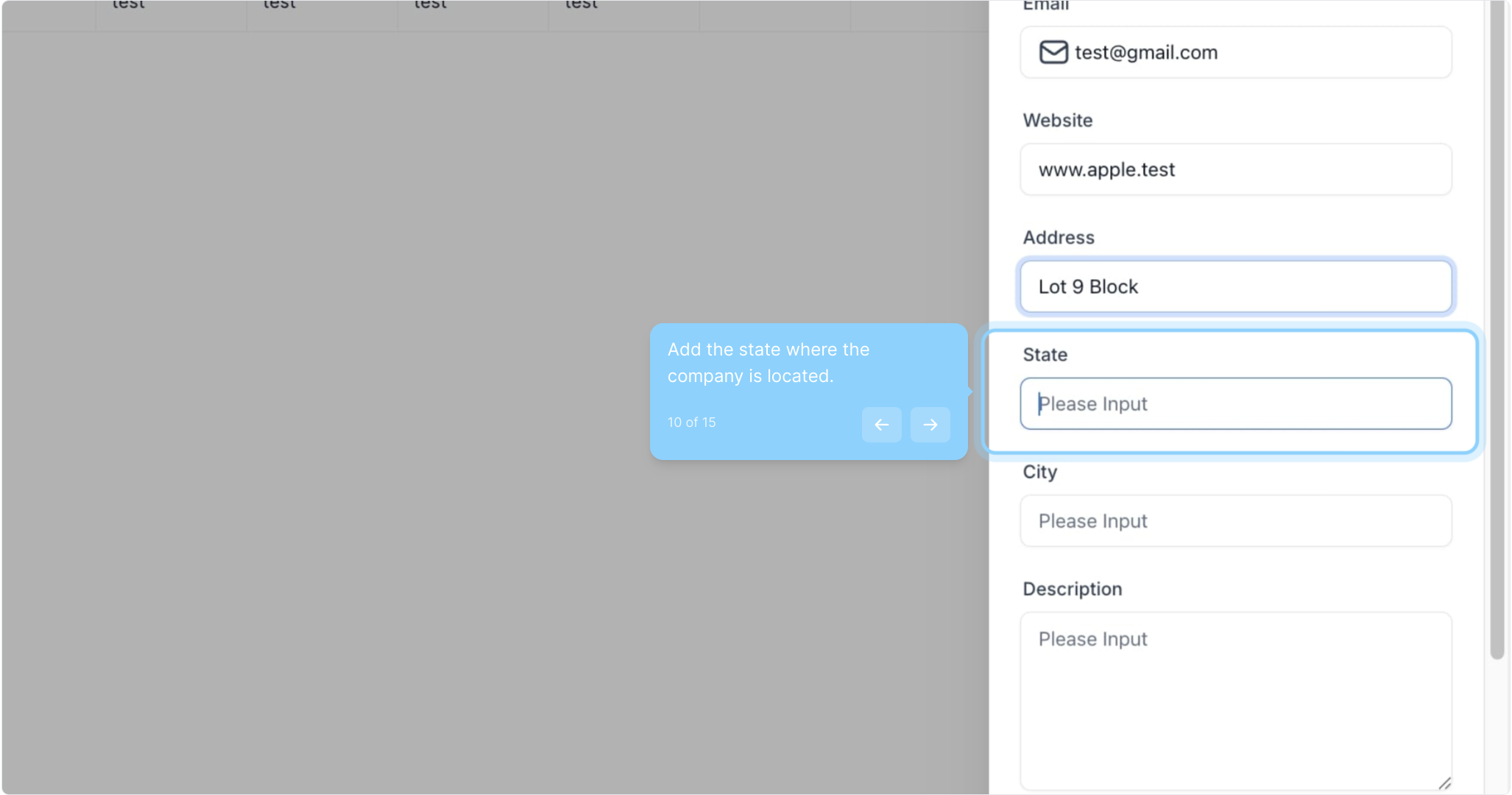 10. Add the state where the company is located.