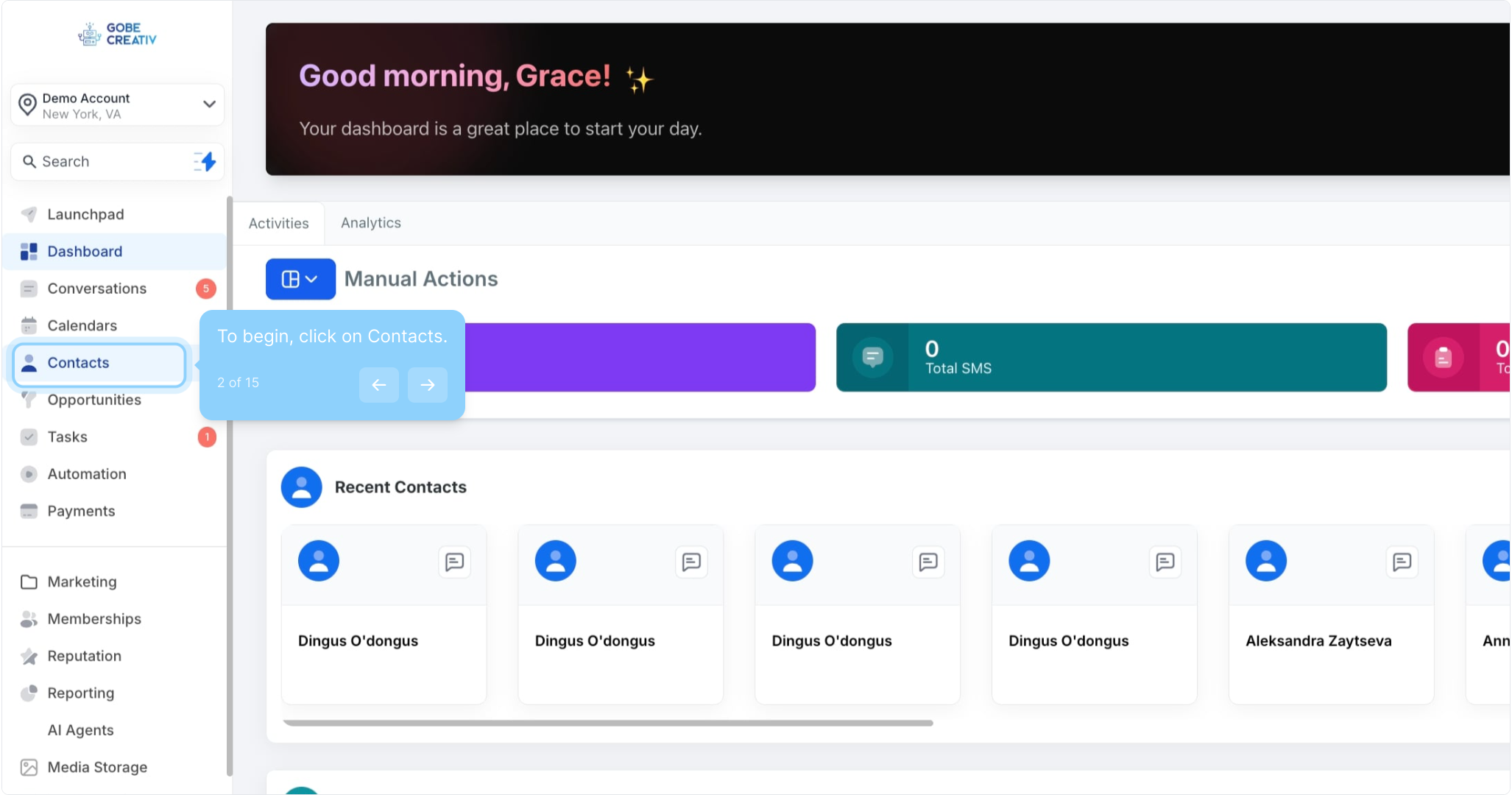 2. To begin, click on Contacts.