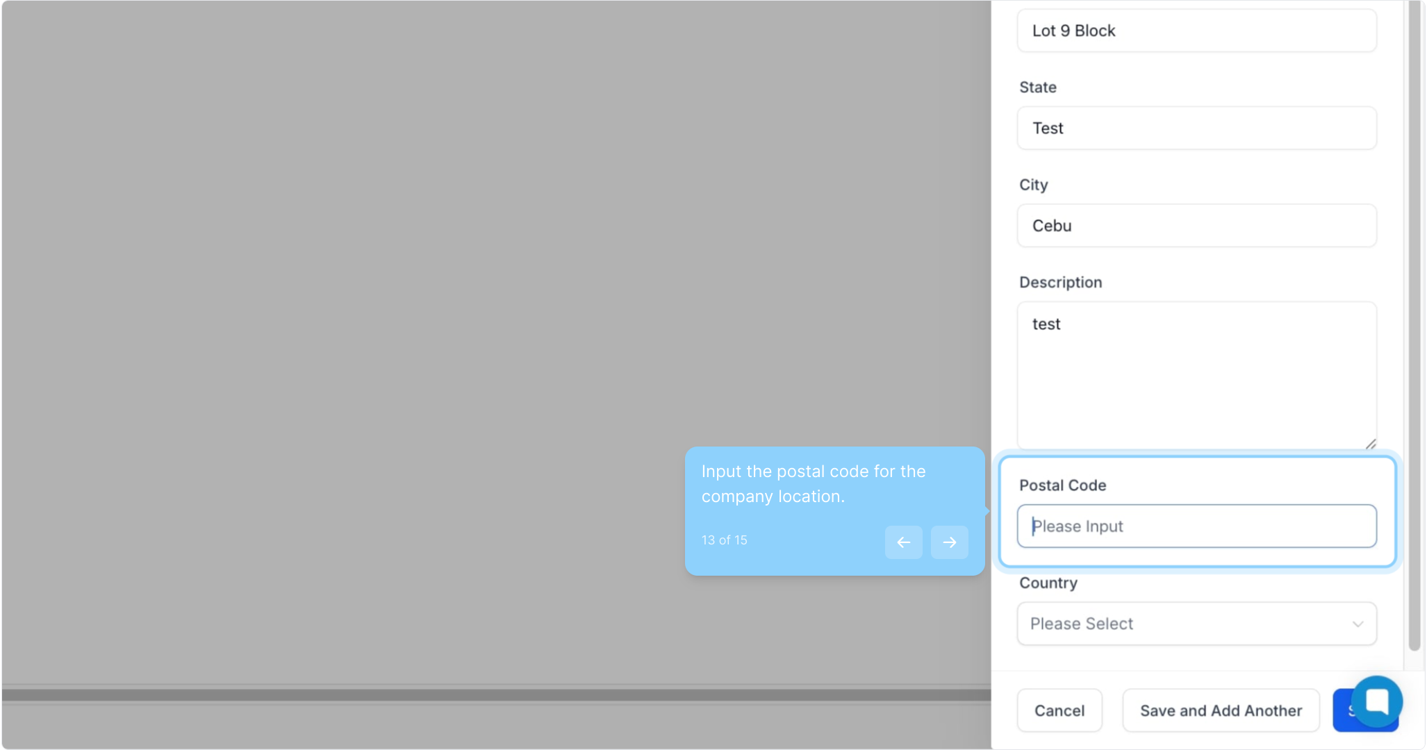 13. Input the postal code for the company location.