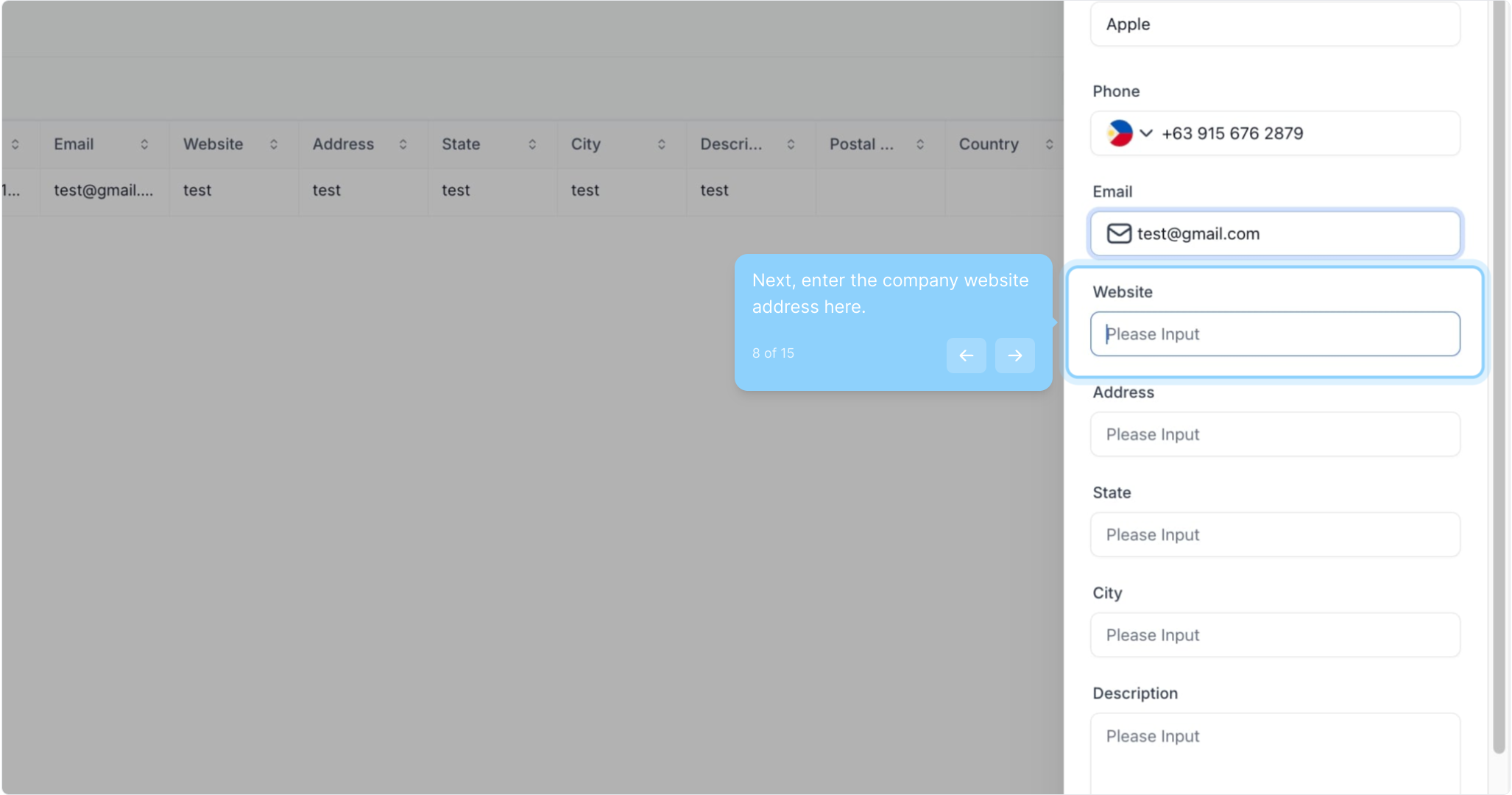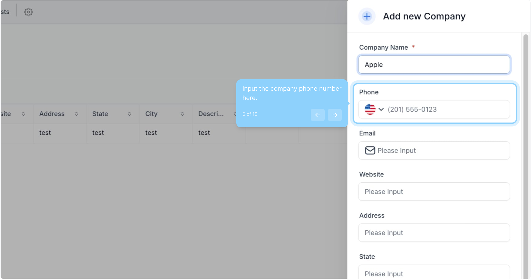 6. Input the company phone number here.