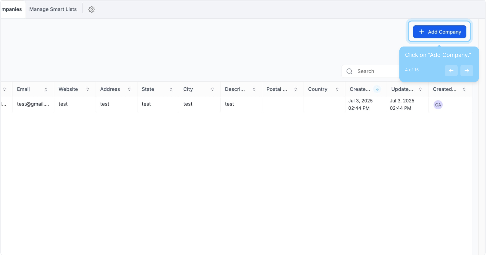4. Click on "Add Company."