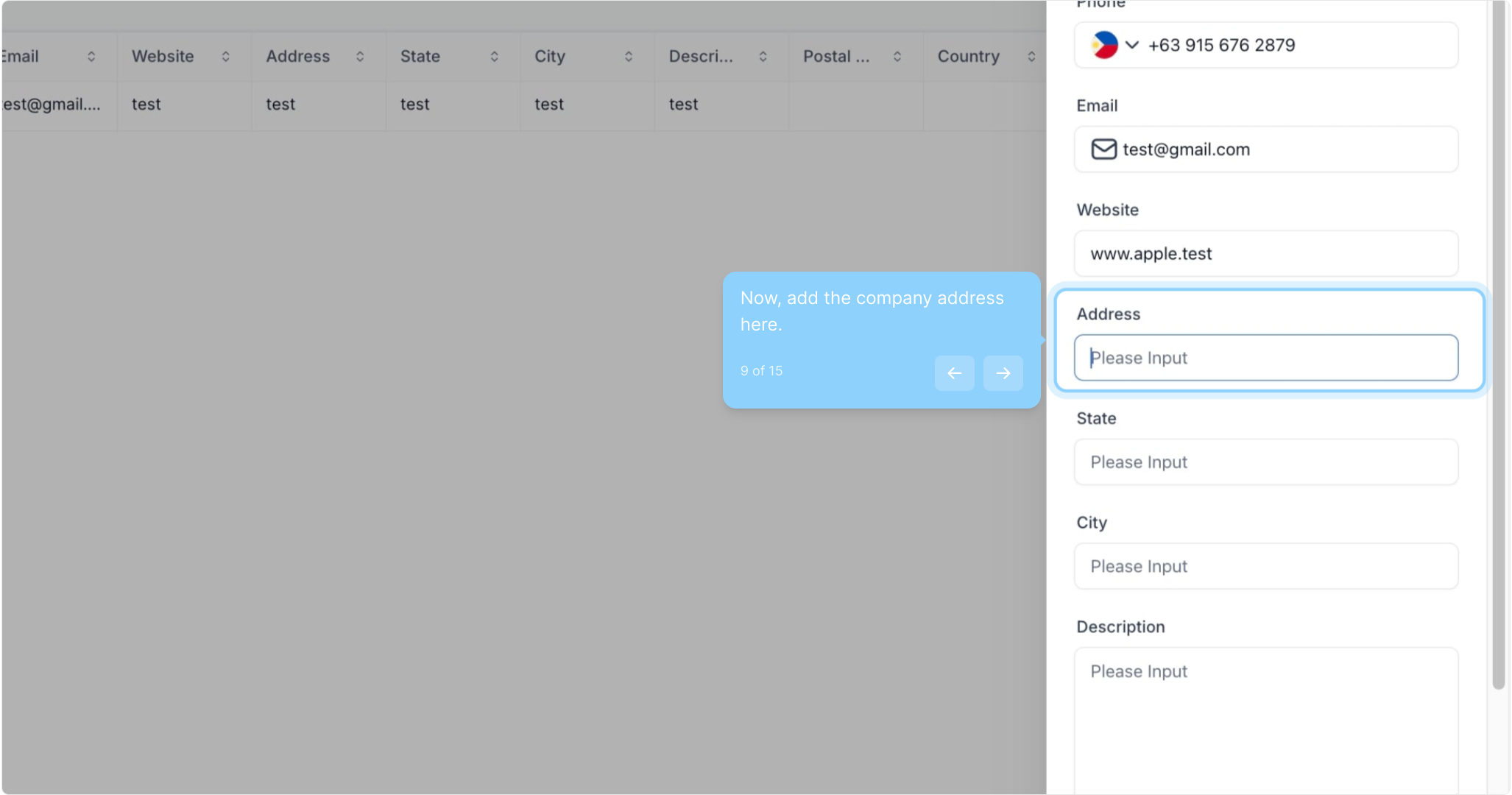 9. Now, add the company address here.