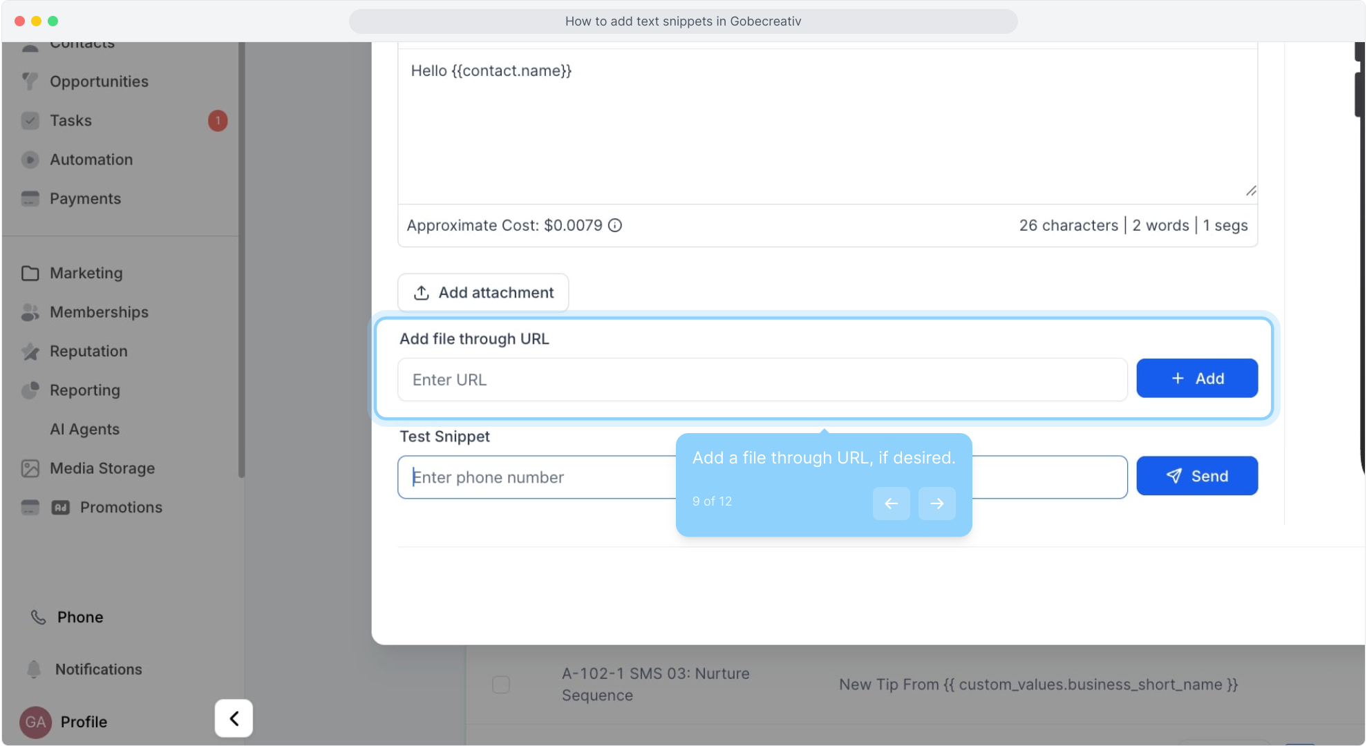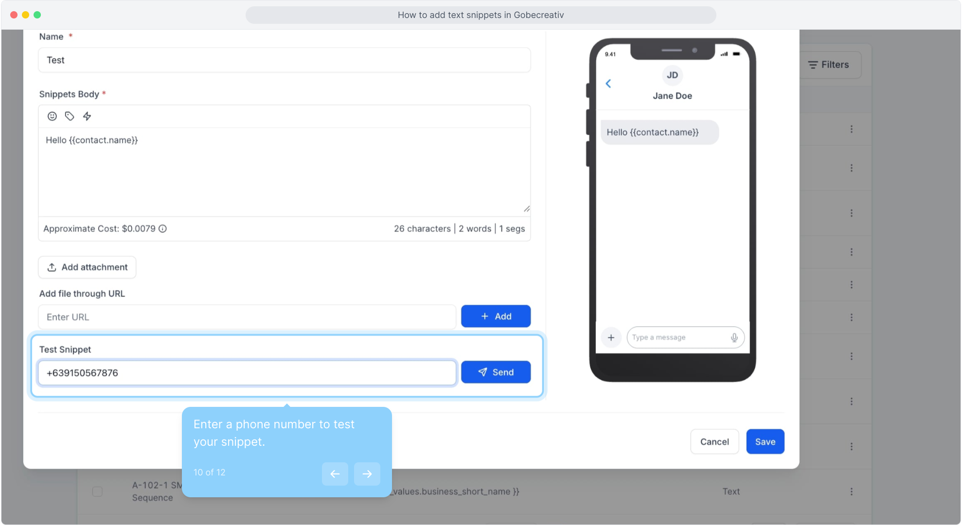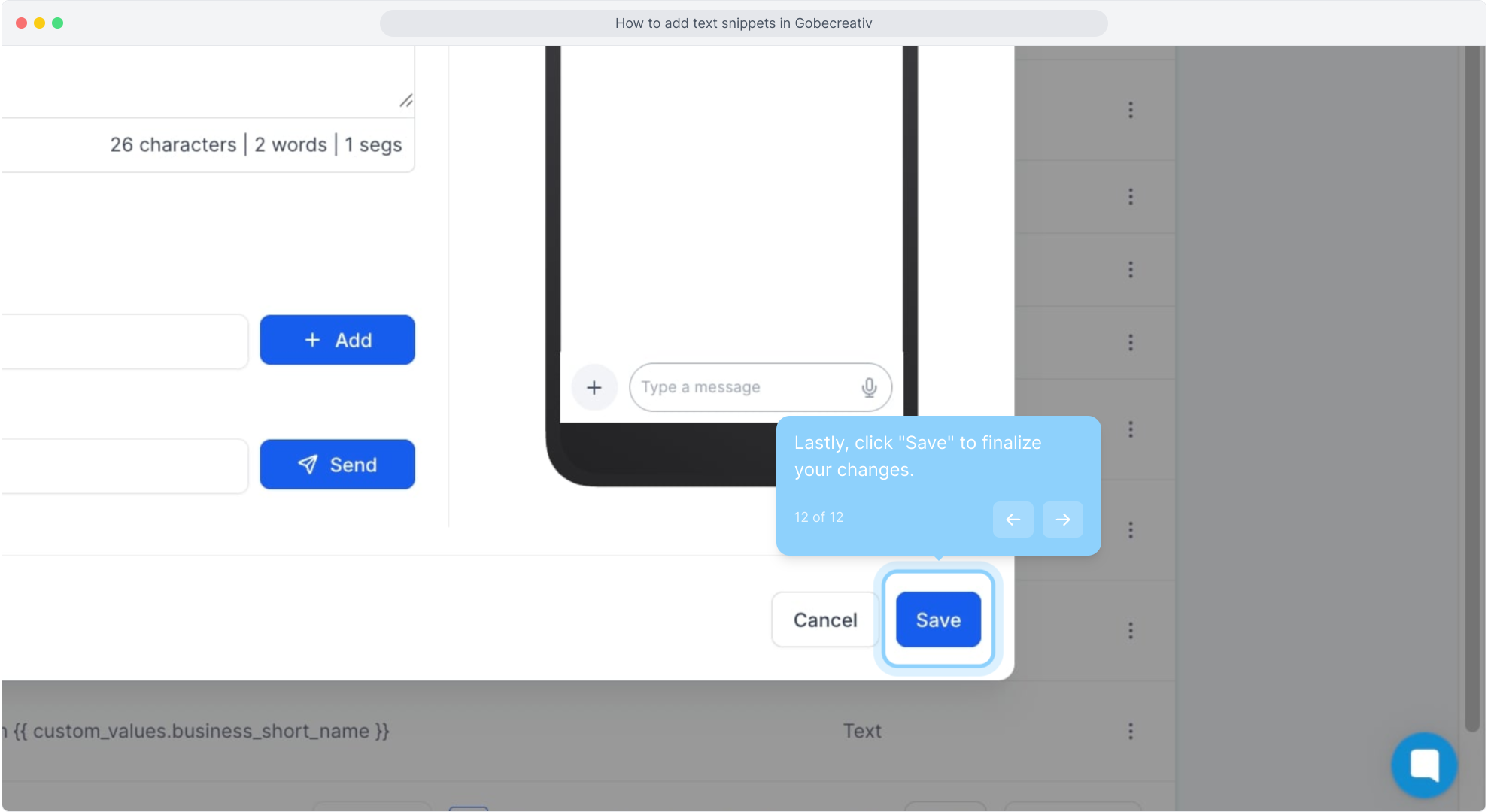 How to add text snippets in Gobecreativ | Gobe Creativ